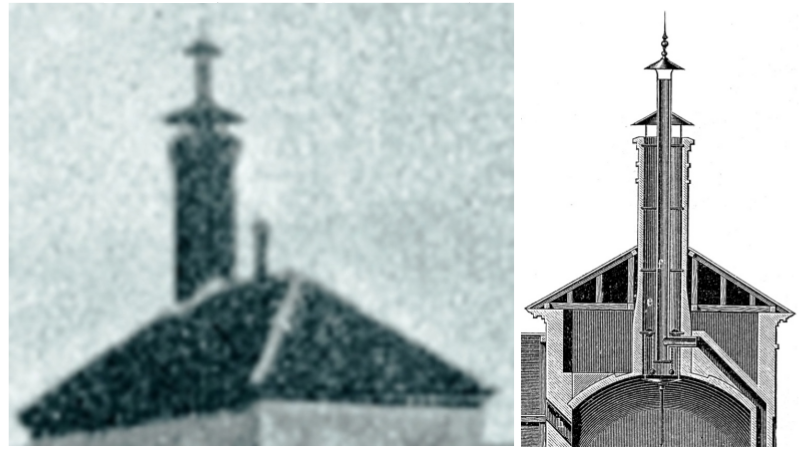 Nejtypičtějším identifikačním znakem každého vertikálního sladovnického hvozdu byl vždy nástavec na hvozdovém komínu, zvaný "Klobouk pana starého" či "Bába" či také jednoduše "Novákův klobouk". Nástavec sloužil k zabránění vnikání deště do prostor horní lísky a v případě otočného nástavce, aby nebyl tah hvozdu ovlivněn větrem. Vzhledem k faktu, že vertikální hvozd je technologická záležitost obvykle na pět pater, tak sladovnický komín s regulačním nástavcem zpravidla dominantně převyšoval úroveň střech pivovaru či sladovny. Nejinak tomu bylo i v Želetavě, kde na dálkových pohledech města dominoval vždy hvozd a kostelní věž svatého Michaela.